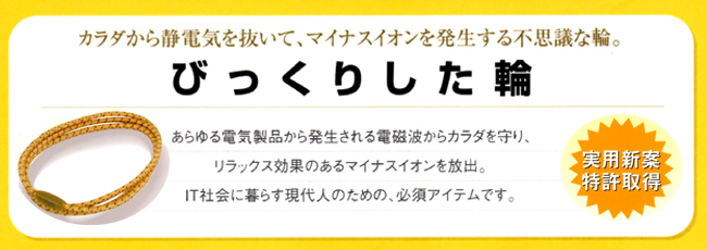 静電気を体から抜いて、マイナスイオンを発生する実用新案特許取得のふしぎな輪。