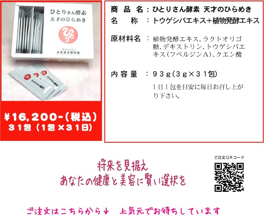 110種類の酵素が配合された「ひとりさん酵素天才のひらめき」新登場!
