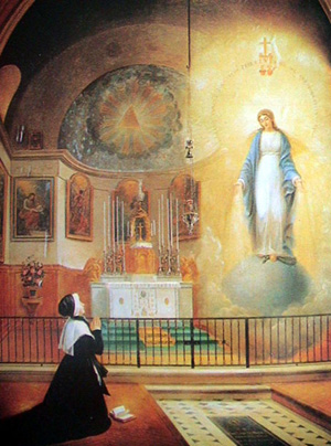 1830年フランスパリのロザリオ教会カテリーナ・ラブレ修道女のもとに聖母マリアが