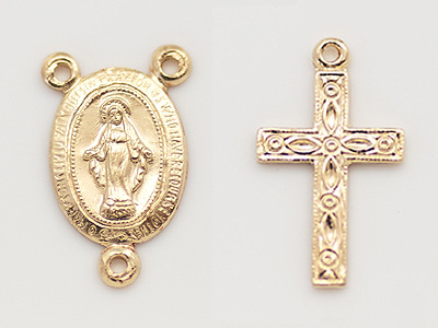 シルバーに14金メッキされた14金ゴールドフィールドの不思議のメダイと十字架で制作します。