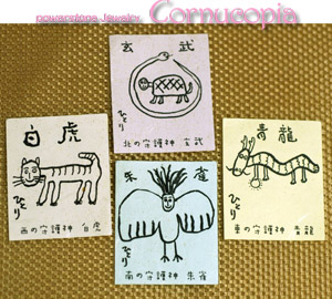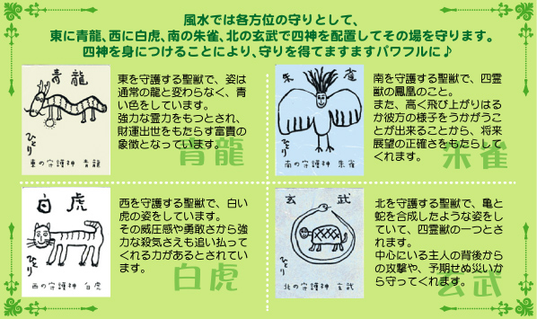 「涼やかさとパワフルな波動のブレスレットをアクアマリンで作る」と そこで、ひとりさんをイメージし、また浮かんだのは「風水四神」 まるかん出陣式(新年会)ではひとりさんが考えたナレーション 「東の青龍、南の朱雀、西の白虎、北の玄武に守られていざ出陣の…」で 出陣式が始まります。